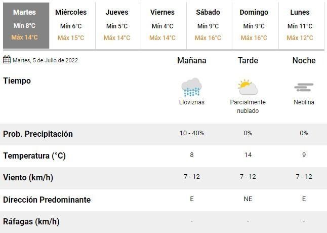 Los expertos esperan que el martes cierre con nuevas neblinas, para dar paso a un miércoles con 6°C de temperatura mínima y lo posibilidad de algunas lloviznas aisladas durante la noche.