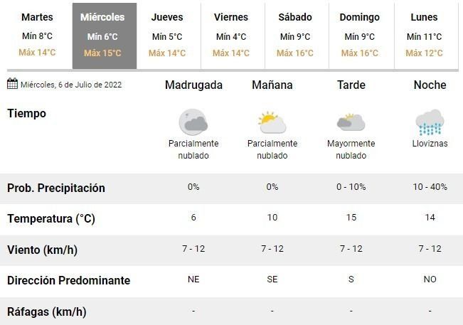 En ese marco, en el SMN pronostican una jornada con un 100% de humedad y una temperatura máxima que podría alcanzar hasta unos 14°C como antesala de una semana que continuará con condiciones cambiantes, pero temperaturas más o menos similares hasta los próximos dos días de descanso.