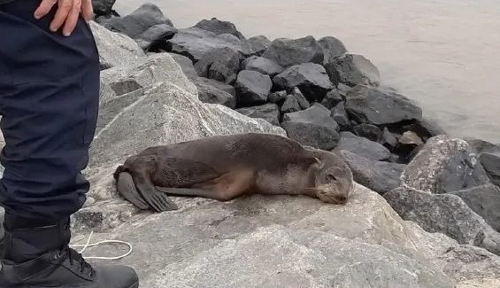Rescataron un lobito marino que apareció desorientado en el Puerto La Plata