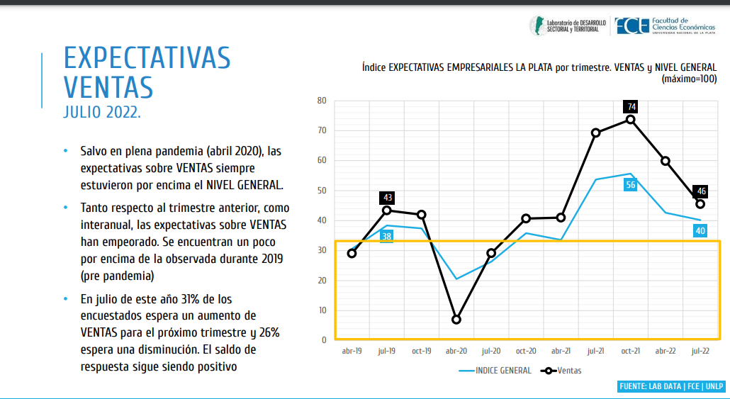 En el Índice de Expectativas Empresariales en La Plata de julio, elaborado por el Laboratorio de Desarrollo Sectorial y Territorial de la facultad de Ciencias Económicas de la UNLP, reveló que existe una caída del optimismo entre los empresarios locales sobre la cantidad de ventas que esperan tener en los próximos meses.