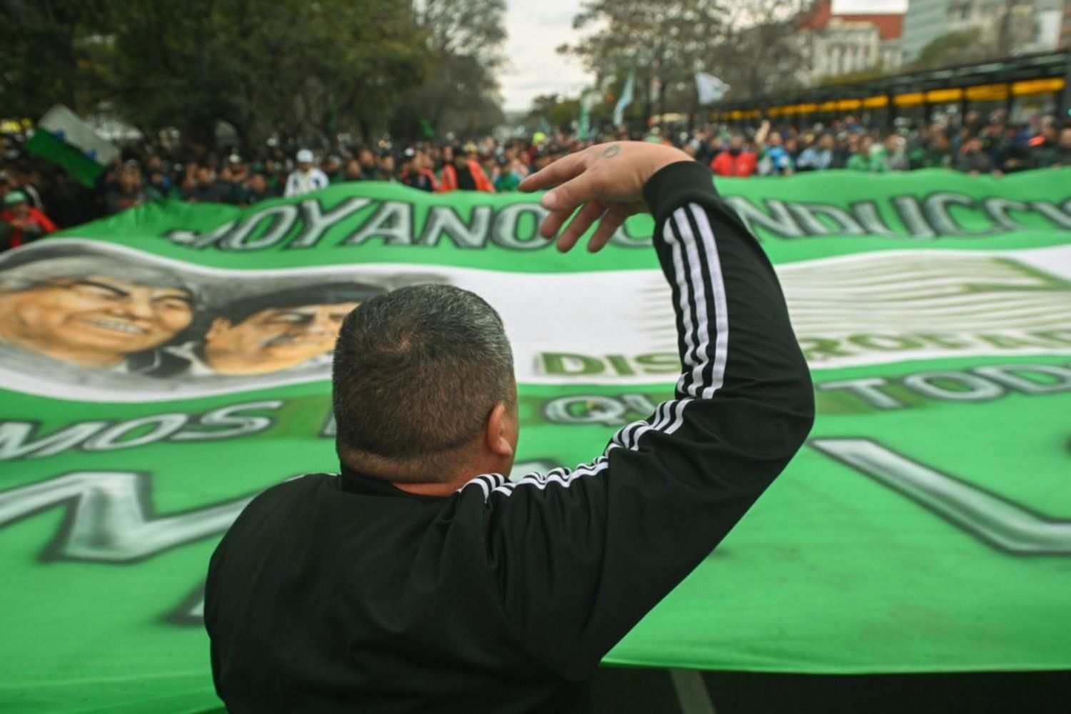“Hablo de los empresarios nucleados en AEA, donde están los que remarcan los precios, los medios, la asociación de bancos, que hoy quieren llevar a un golpe institucional”, acusó Moyano. El dirigente agregó que estos sectores “quieren llevar a un golpe institucional y venimos a denunciar a esta manga de delincuentes que todos los días atacan al Gobierno”. Asimismo, pidió que el Gobierno nacional otorgue un bono “para los compañeros que no llegan a fin de mes”.