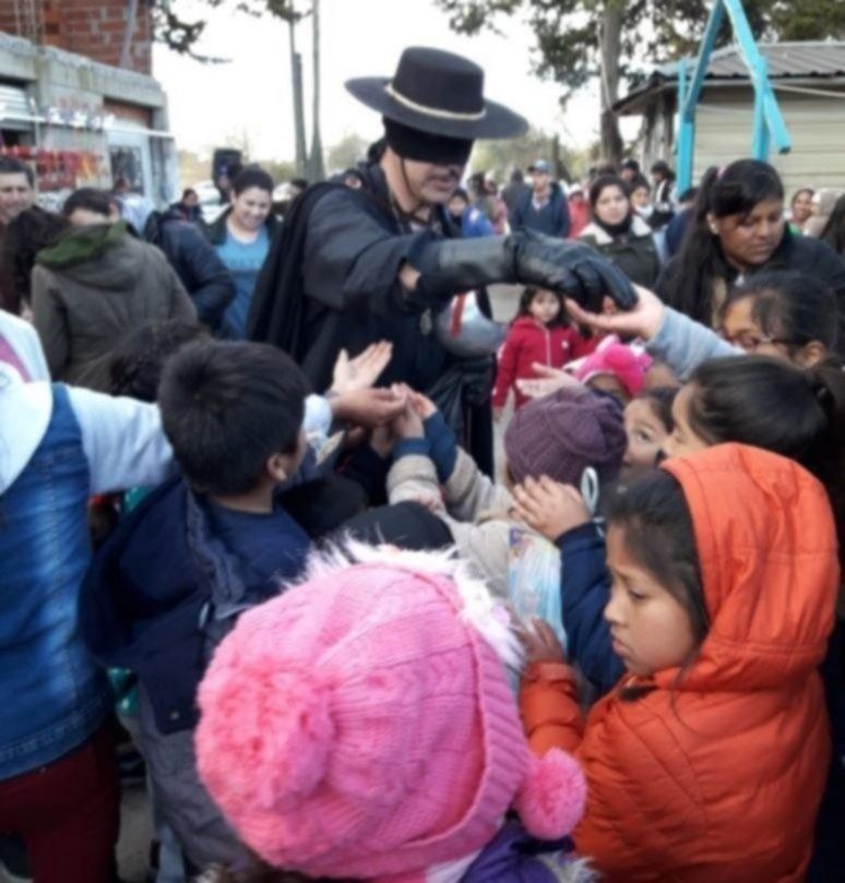 El Zorro solidario de La Plata suele visitar el hospital de Niños y distintos barrios de la región para ayudar a las chicas y chicos que más lo necesitan.