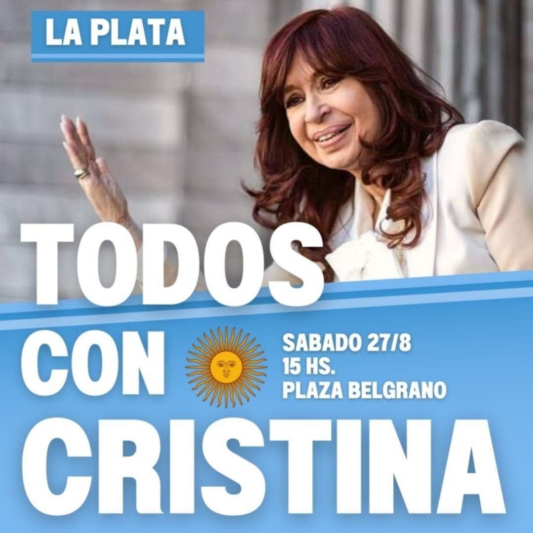 Bajo el lema "Todos con Cristina", el peronismo platense se reunirá este sábado en la plaza Belgrano en apoyo a la vicepresidenta Cristina Kirchner en contra del pedido de condena a 12 años de prisión en la causa "Vialidad". La actividad, que fue convocada por redes sociales, se realizará en 13 y 40 a partir de las 15.