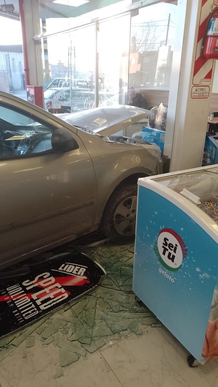 Por razones que todavía no están del todo claras, el vehículo se aceleró sin previo aviso cuando la conductora se disponía a abandonar la estación. El Chevrolet Ágile se detuvo al chocar contra el frente del local, que resultó seriamente dañado.