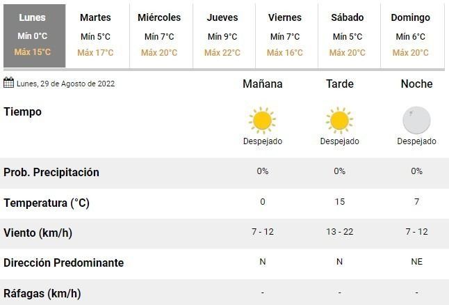 Con mucho sol y sin nubes, el lunes arrancó con bajas temperaturas. Los especialistas del SMN anticipan una jornada con un excelente clima, una temperatura oscilando entre 0 y 15°C y vientos soplando desde el norte, lo que ayudaría a elevar las máximas ya entrada la semana.