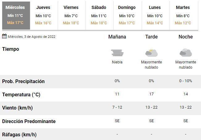 Los meteorólogos argentinos anticipan una tarde con una máxima de 17°C, que se combinará con cerca de un 97% de humedad para configurar una jornada agobiante en la región. El mismo esquema, además, se repetiría en lo que resta de la semana e incluso durante las próximas dos jornadas de descanso.