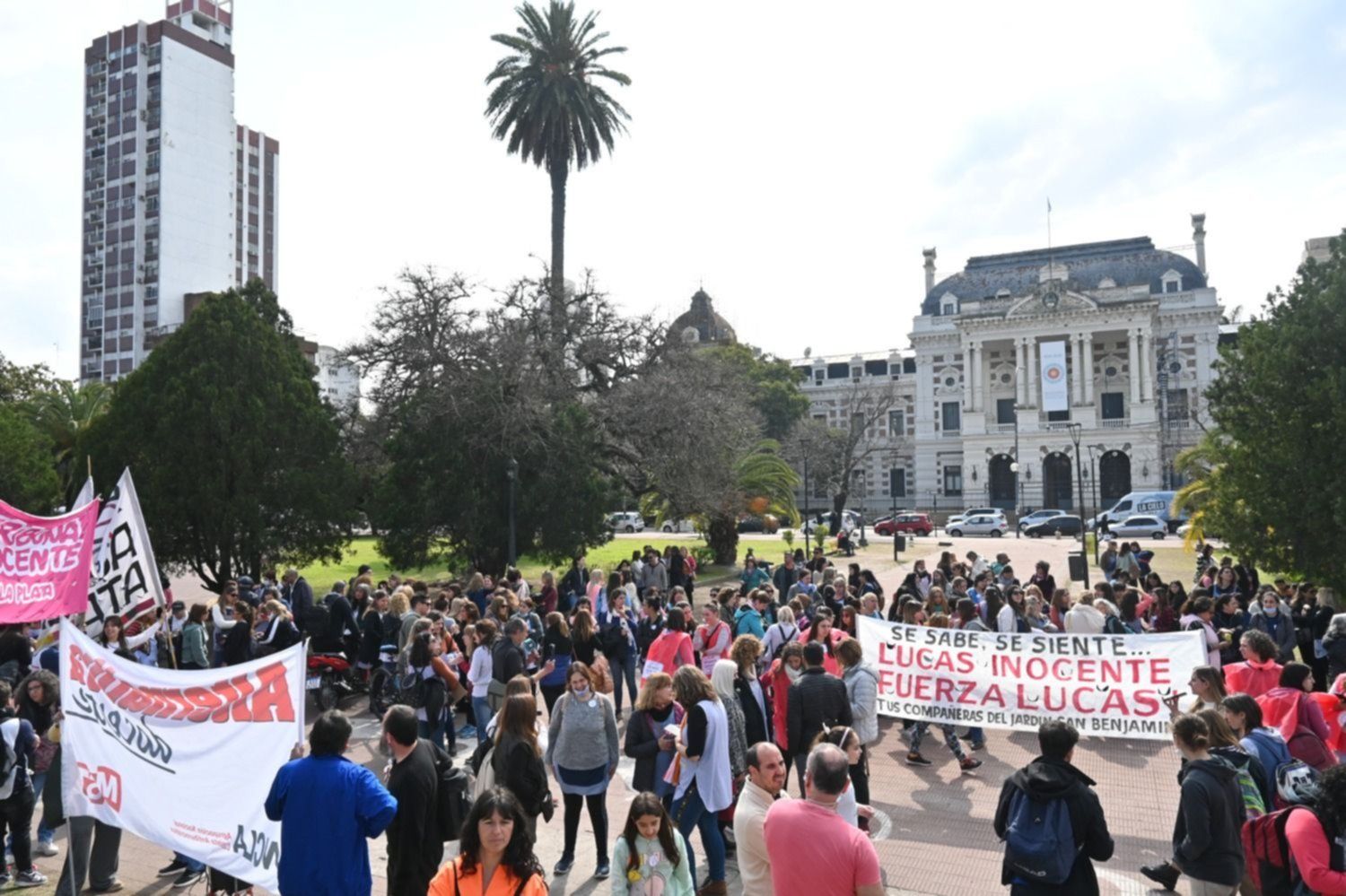 Con carteles clamando por la inocencia del profesor condenado, los manifestantes autoconvocados se reunieron desde poco antes del mediodía para exigir que la Justicia anule el fallo en su contra y Puig sea liberado cuanto antes.
