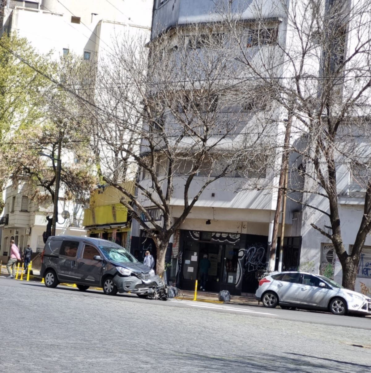 La colisión se produjo en la esquina de diagonal 78, 3 y 57 entre una moto y una camioneta utilitaria marca Peugeot, y terminó con el conductor de la moto impactando y rompiendo el vidrio del rodado mayor, en tanto la moto fue arrastrada varios metros.