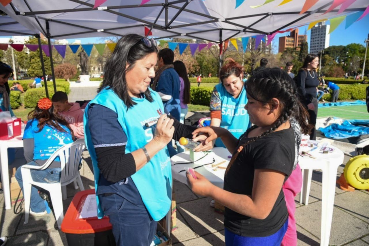 El espacio verde central de la ciudad sirvió para que se desplegaran las postas de información; los puestos de entrega de folletería, asesoramiento jurídico y vacunación; así como los espacios donde hubo talleres, charlas sobre educación inclusiva, odontopedriatría, actividades deportivas y shows en vivo.