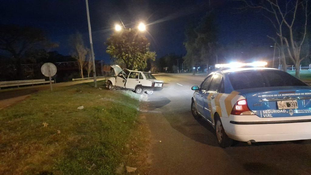 Un terrible incidente de tránsito se produjo durante la madrugada de este lunes, cuando un auto perdió el control y se estrelló contra una columna de alumbrado público ubicada en medio de una rambla.