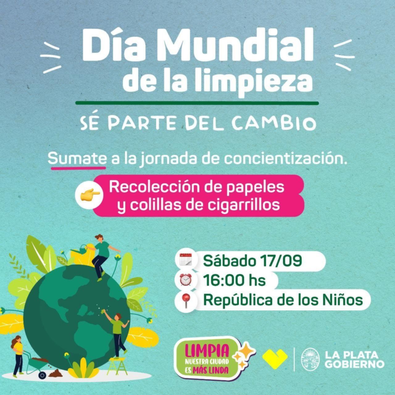 En el marco del Día Mundial de la Limpieza, la Municipalidad organizó una jornada para limpiar la República de los Niños. Según indicaron, se trata de una actividad grupal que se realizará este sábado 17 de septiembre con el objetivo de recolectar papeles y colillas en el emblemático parque de Gonnet.