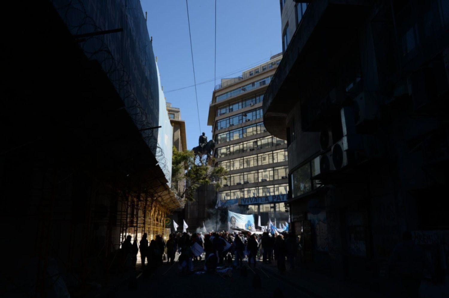 Además se desplegó un doble vallado de baja altura montado sobre el frente de la calle Balcarce y que mantendrá a las personas que se movilicen a unos 30 metros de las rejas de la Rosada.