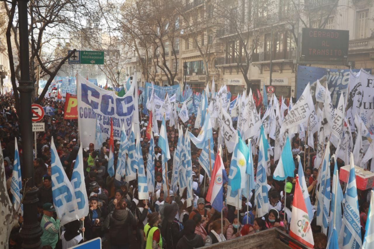 Con tránsito totalmente cortado en ambos sentidos de la Avenida 9 de Julio desde el Obelisco hasta avenida San Juan, también se hicieron presentes el MTD Aníbal Verón, la Confederación Nacional de Cooperativas de Trabajo (CNCT), la Corriente Nacional Martín Fierro, el Movimiento Octubres, la Confederación de Trabajadores Universitarios y Mujeres del Movimiento Evita.
