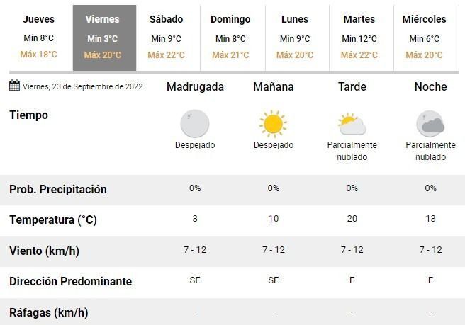 El sol, sin embargo, volverá a brillar el viernes, para cuando se anticipa un marcado descenso de la temperatura por la mañana, con solo 3°C de mínima, y un leve aumento de la máxima, que superaría los 20°C por la tarde.