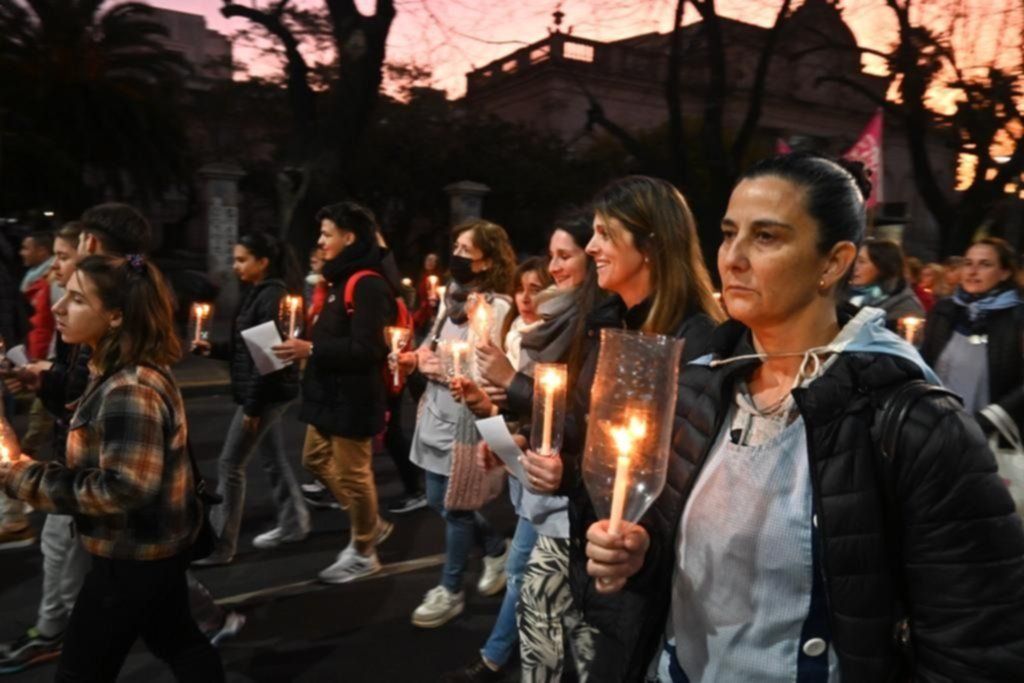 La marcha, que llegó a ocupar entre dos y tres cuadra, arrancó pasadas las 18 desde el edifico de Fiscalías de 7 entre 56 y 57, lugar donde el Tribunal Oral en lo Criminal (TOC) Nº 1 sentenció al docente en un fallo unánime, por “abuso sexual con acceso carnal gravemente ultrajante, agravada por ser encargado de su educación en concurso ideal con corrupción de menores”.