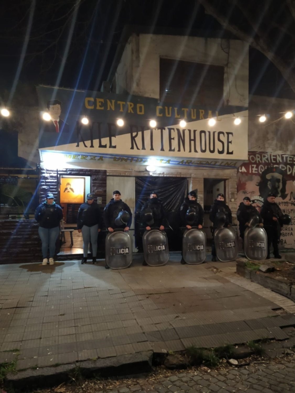 Los operativos se realizaron en el Centro Cultural Kyle Rittenhouse, ubicado en 5 entre 64 y 65, donde se reúne un grupo de personas que son señaladas por tener una tendencia neonazi, por "difundir ideas negacionistas, odio y racismo y de estar detrás de distintas atentados y vandalizaciones". En esta ocasión, festejaron el atentado el último jueves e investigan si alguien del grupo estuvo involucrado.