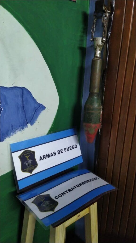 La Policía realizó un allanamiento en el centro cultural Kyle Rittenhouse de La Plata y encontró un proyectil de guerra. Luego de detener a uno de los integrantes del centro por avalar el atentado contra Cristina Kirchner, las autoridades ingresaron y secuestraron una munición de mortero de 83 mm.