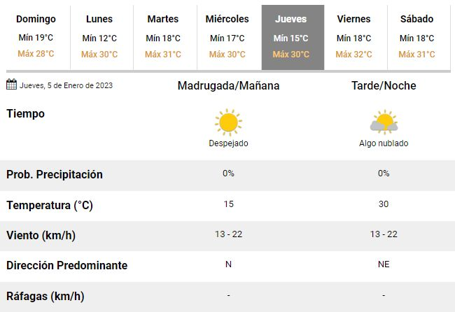 Según los expertos del SMN, la primera semana del año transcurrirá sin contratiempos y tras un lunes a pleno sol, pronostican una seguidilla de jornadas con excelentes condiciones y máximas rondando picos de entre 30 y 32°C.