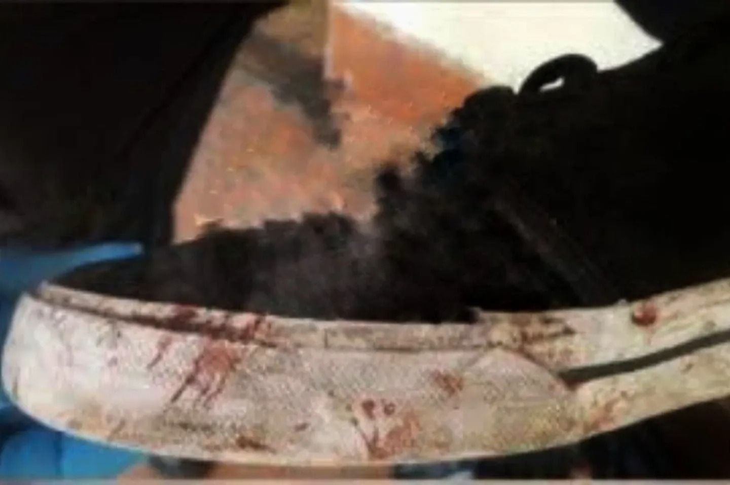 Tras peritar 14 calzados: talla, marca, modelo e impresión de la suela, para la fiscalía no quedan dudas de que el golpe letal que dejó su huella en el maxilar inferior izquierdo de la víctima corresponde a la zapatilla derecha de Thomsen.