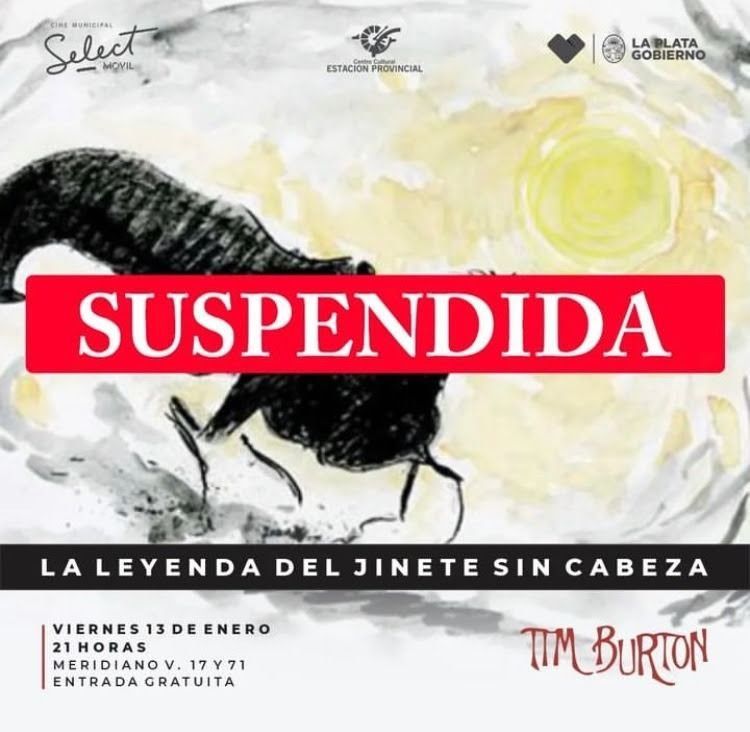 La Municipalidad de La Plata informó que fue cancelada la proyección de “La Leyenda del Jinete sin Cabeza” programada para esta semana en el playón de la Vieja Estación.
