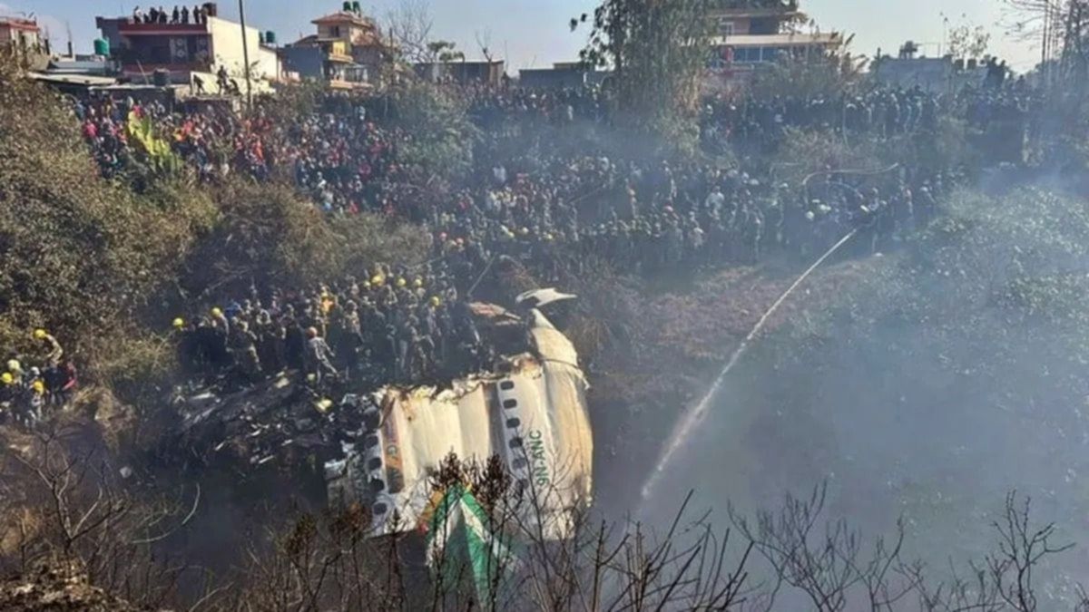 El fuselaje incendiado del aparato se encontraba en un profundo barranco entre el antiguo aeropuerto de Pokhara, creado en 1958, y el nuevo terminal internacional de esta ciudad, inaugurado el pasado 1 de enero. Tras el accidente, los rescatistas trataron de sofocar el fuego entre los restos del aparato, un ATR 72 propulsado por dos motores turbohélice.