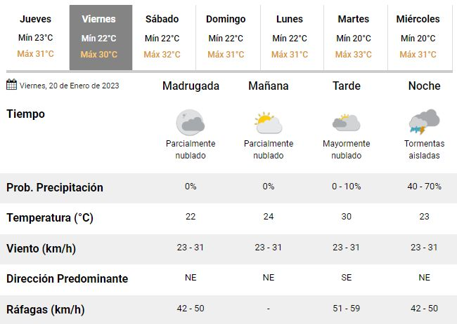 De acuerdo con los meteorólogos argentinos, el viernes transcurrirá, una vez más, caluroso y con una temperatura de entre 22 y 30°C. Con algo de sol pero cielo mayormente nublado, los especialistas advierten que a la jornada transcurrirá con mucho viento en la ciudad y el resto de la región.