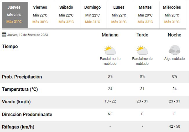El Servicio Meteorológico Nacional (SMN) renovó el alerta amarillo por altas temperaturas que había cesado en las primeras horas de la jornada previa y es que para este jueves se espera una tarde agobiante. El cielo estará parcialmente nublado, la humedad rondará el 75% y el viento soplará desde el Noreste y el Este a velocidades de entre 13 y 21 km/h, incluso pudiendo registrarse ráfagas de hasta 50 km/h.