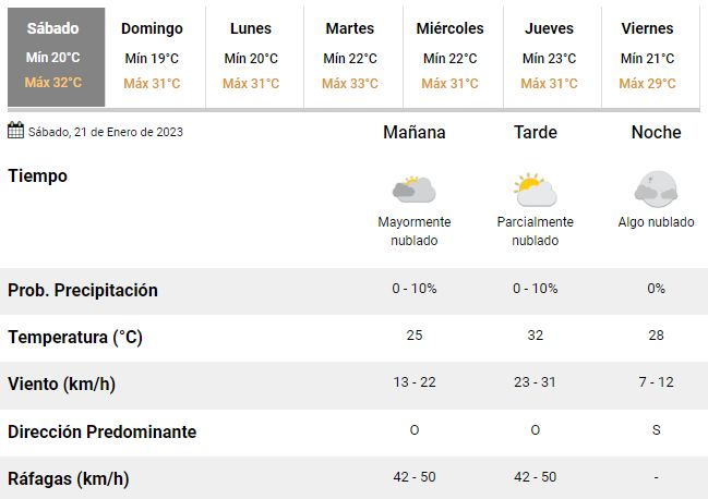 Desde este sábado volverá el agobiante calor y durante los próximos días el termómetro marcará siempre por encima de los 30°C, tal y como sucedió durante la última semana. En esa misma línea, el domingo transcurrirá con un cielo algo cubierto y una temperatura de entre 19 y 31°C.
