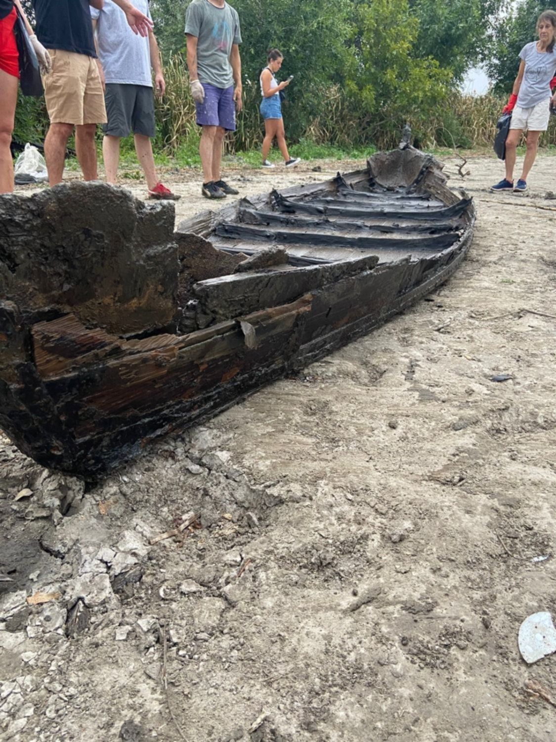 Más allá de los residuos sacados del lecho de El Pescado, los vecinos realizaron un sorprendente hallazgo. Se trata de la estructura de un barcaza que los vecinos creen que debe ser muy antigua. "Con la bajante, la estructura de madera quedó casi en la superficie y logramos sacarla sin romperla", contó Norberto.