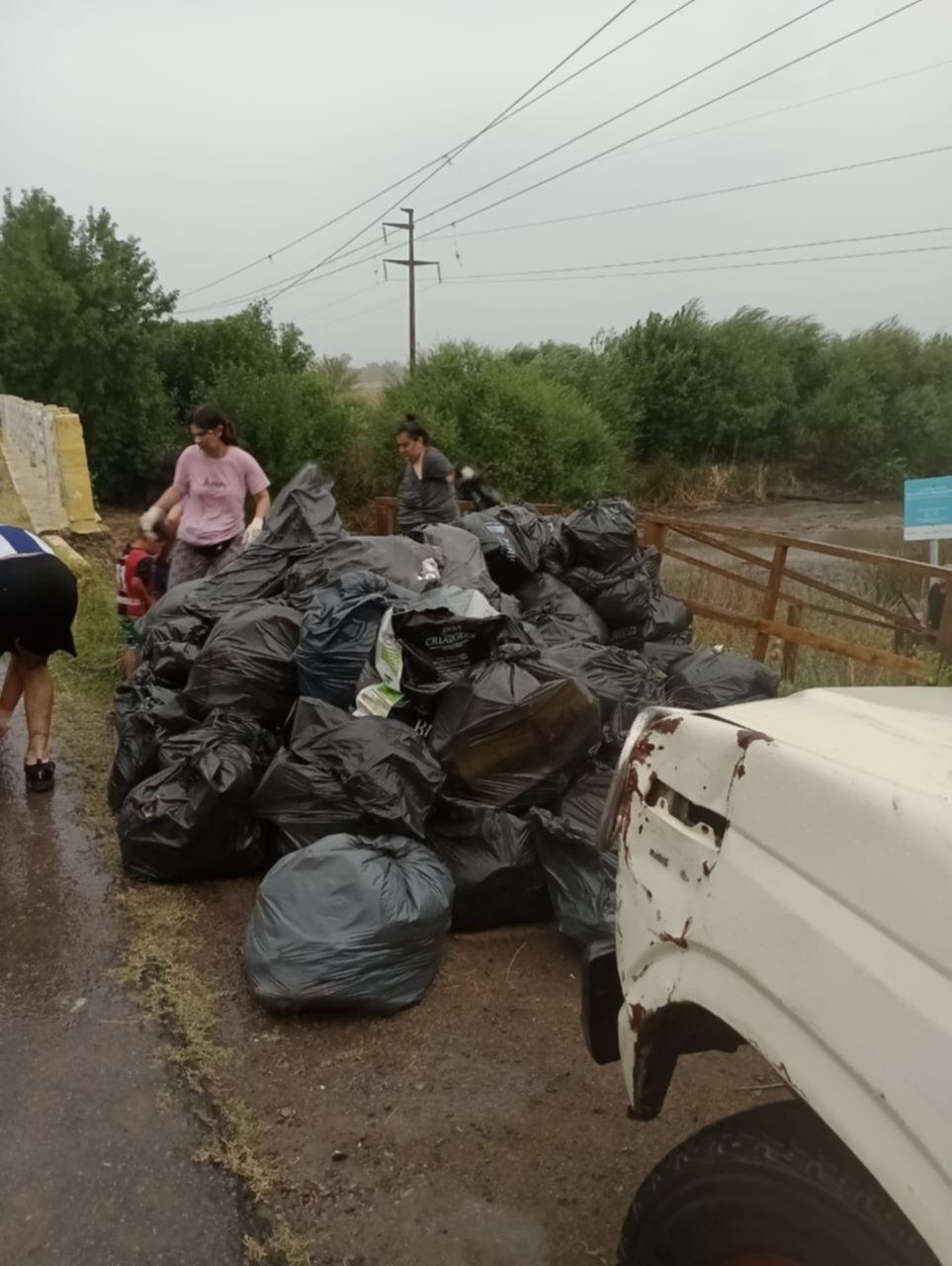 Así, una vez concluida la jornada de trabajo, las bolsas se acumularon a un costado de la calle que corre cerca del arroyo y fueron trasladadas en camionetas. Y fueron decenas los vecinos de Parque Sicardi que se sumaron este viernes a la jornada de limpieza del arroyo El Pescado, el único considerado "no contaminado" de la región