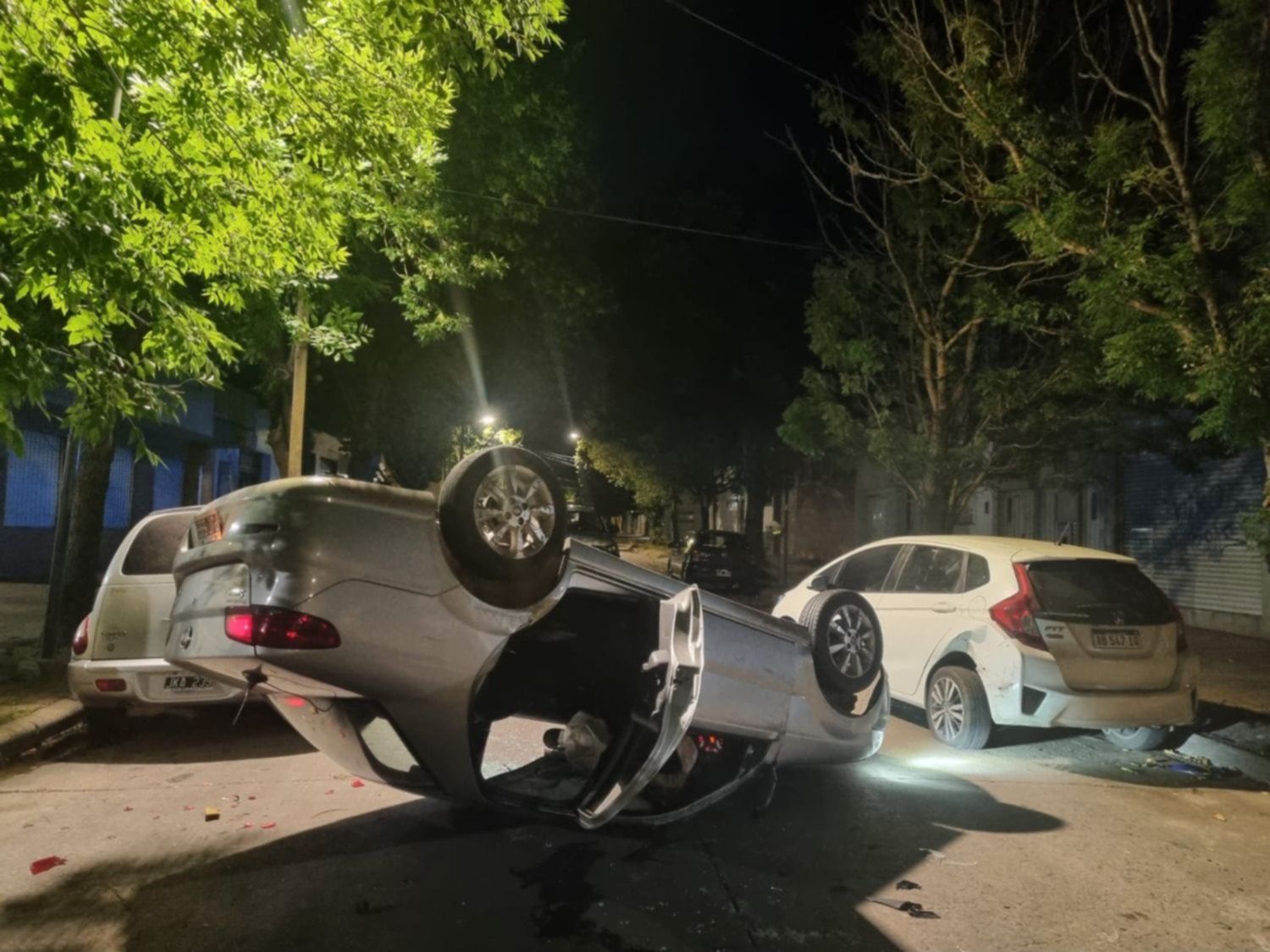 Ocurrió este domingo por la madrugada en 65 y 28. El conductor impactó contra dos vehículos que estaban estacionados y terminó dado vuelta en plena calle.