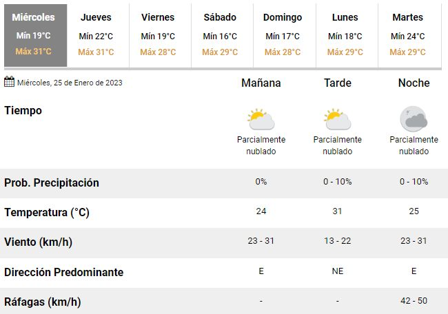 Así las cosas, el tercer día de la semana amaneció fresco y con 19°C de temperatura mínima, pero el calor volverá a decir presente y es que se espera una máxima de 31°C en medio de una jornada con cielo parcialmente nublado y una humedad cercana al 100%.