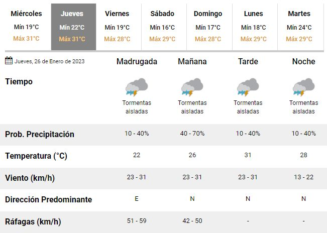 Desde la madrugada del jueves, en tanto, se espera que el clima empeore rápidamente, dando paso a la posibilidad de tormentas aisladas durante todo el día y hasta ya entrada la noche, inclusive.