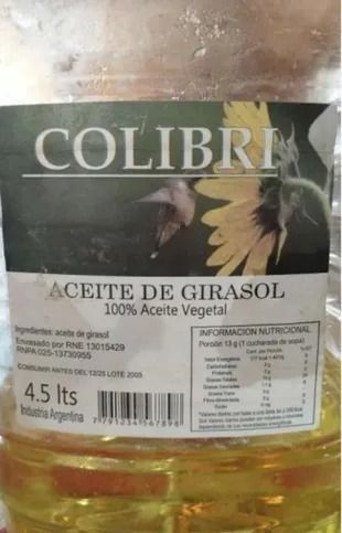 La Disposición 593/2023 fija la prohibición de la elaboración, fraccionamiento y comercialización en todo el territorio nacional, y en plataformas de venta en línea del producto del" Aceite de girasol, 100% aceite vegetal, marca Colibrí, RNE 13015429, RNPA 025-13730955", en cualquier presentación, lote y fecha de vencimiento, por carecer de registro de establecimiento y de producto, y por estar falsamente rotulado al exhibir en el rótulo números de RNE y de RNPA inexistentes, resultando ser en consecuencia un producto ilegal.