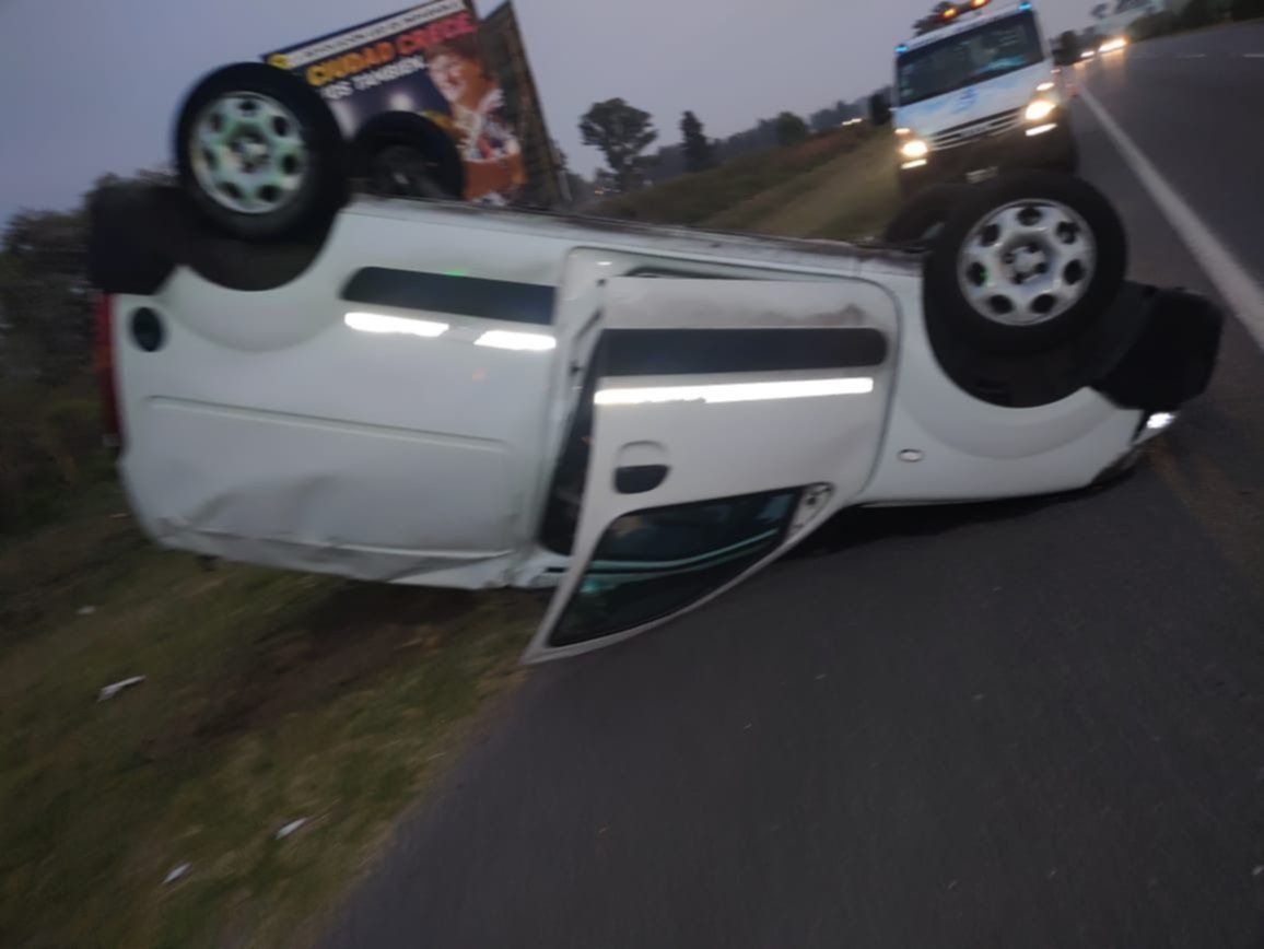 Dos hombres de 30 y 32 años se salvaron de milagro tras sufrir un impactante accidente de tránsito mientras circulaban en la Ruta 2 y perdieron el control de su vehículo, dando una vuelta completa y quedando boca abajo sobre el asfalto de la traza.