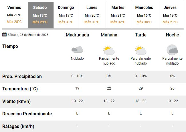 Para el primero de los días de descanso, en tanto, los especialistas esperan un rápido mejoramiento de las condiciones climáticas y temperaturas de entre 19 y 29°C, ya sin chances de lluvia. Los meteorólogos prevén una jornada gris, con vientos de entre 13 y 22 km/h y máximas en aumento, que darán paso a otra calurosa jornada durante el domingo.