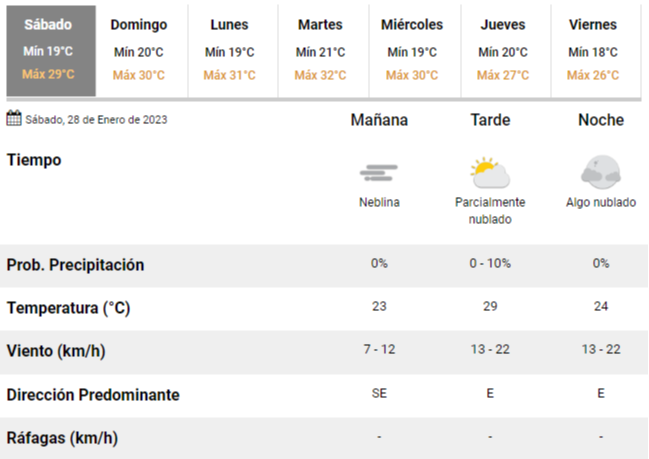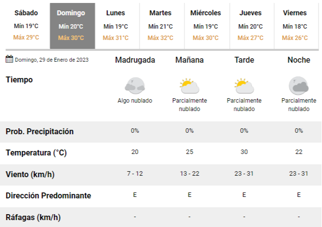 Para el domingo, por su parte, se espera un clima similar: los expertos prevén un cielo algo nublado y una temperatura de entre 20 y 30°C, en medio de lo que será una tarde agradable aunque con poco sol en la ciudad.