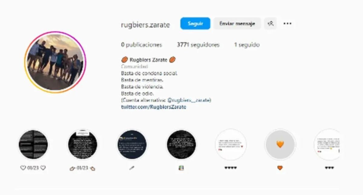 La cuenta en cuestión era @rugbiers.zarate y desde la misma los imputados creaban posteos e historias de Instagram reclamando por su libertad y además dando opiniones acerca de los padres de Báez Sosa. Además, le pedían a sus seguidores que "le recen a Dios y a la Virgen".