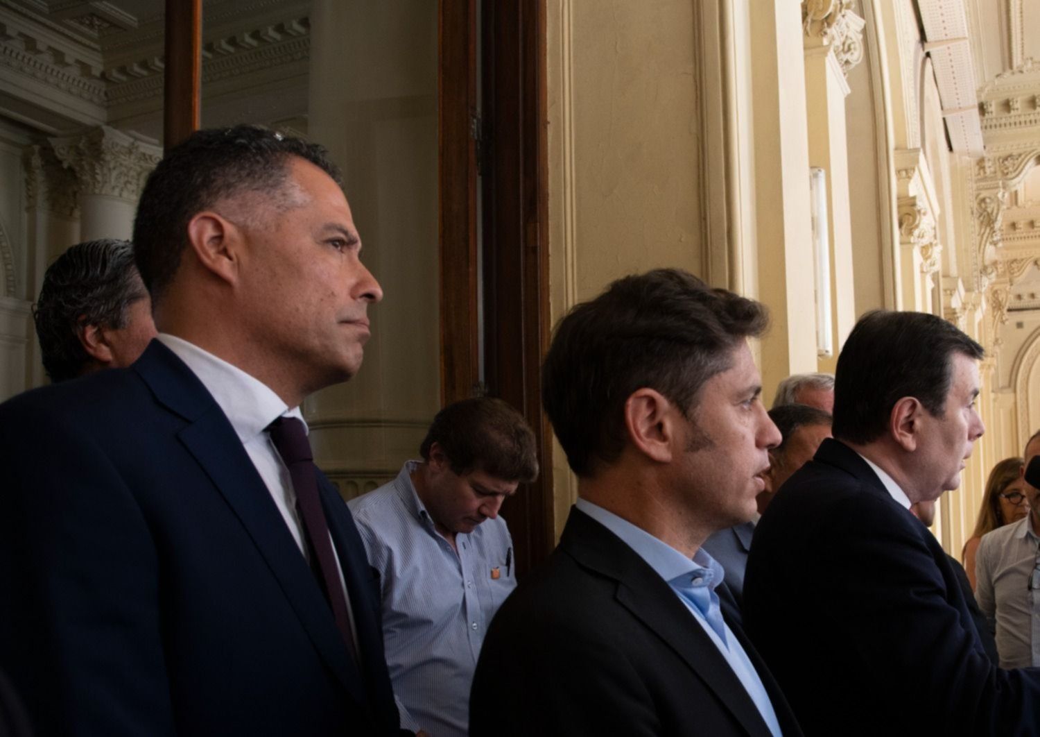De la reunión en la Casa de Gobierno con el Presidente también participaron los gobernadores Axel Kicillof (Buenos Aires), Gerardo Zamora (Santiago del Estero), Sergio Ziliotto (La Pampa), Gustavo Melella (Tierra del Fuego), Gildo Insfrán (Formosa) y Ricardo Quintela (La Rioja). También formó parte el ministro del Interior, Eduardo 'Wado' de Pedro.