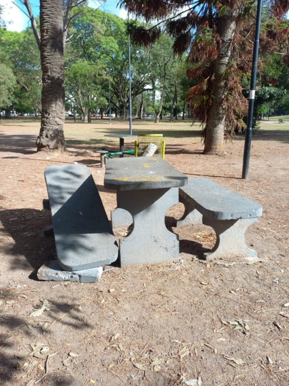 Juan Martín pasaba la tarde en el sector de banquitos y mesas muy cerca del lago del parque y, en un momento, cuando quisieron acomodar uno de los bancos de hormigón que estaba inestable, para poder sentarse, se zafó de su soporte y cayó de lleno sobre su pie derecho. El golpe fue tan fuerte que la estructura rebotó y en ese momento pudo correrse para evitar que la pierna quedara inmovilizada bajo la piedra gris.
