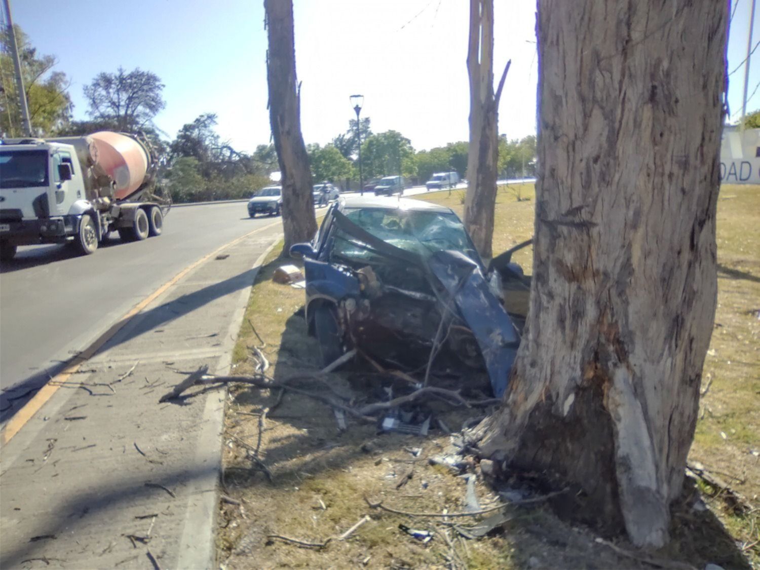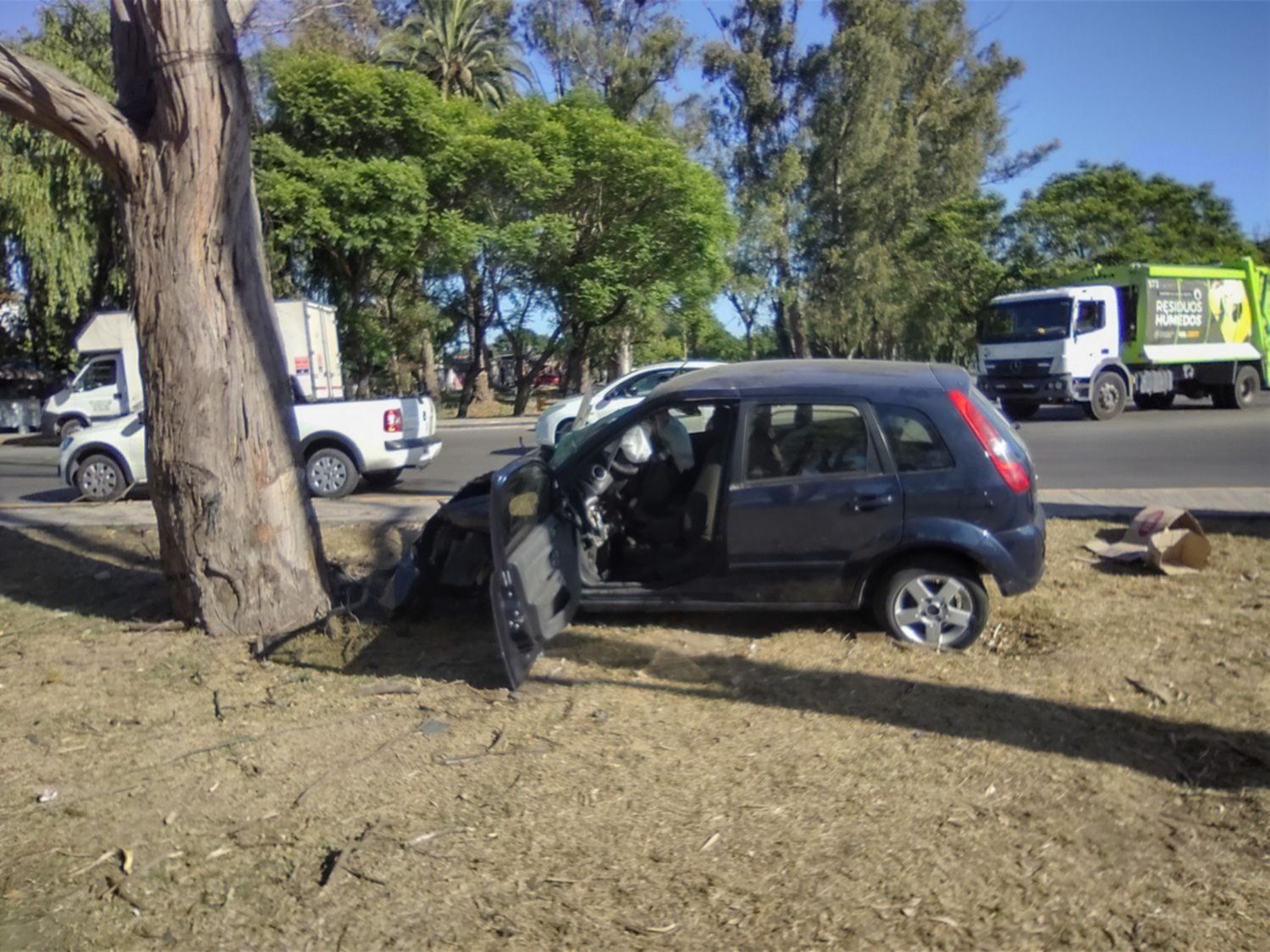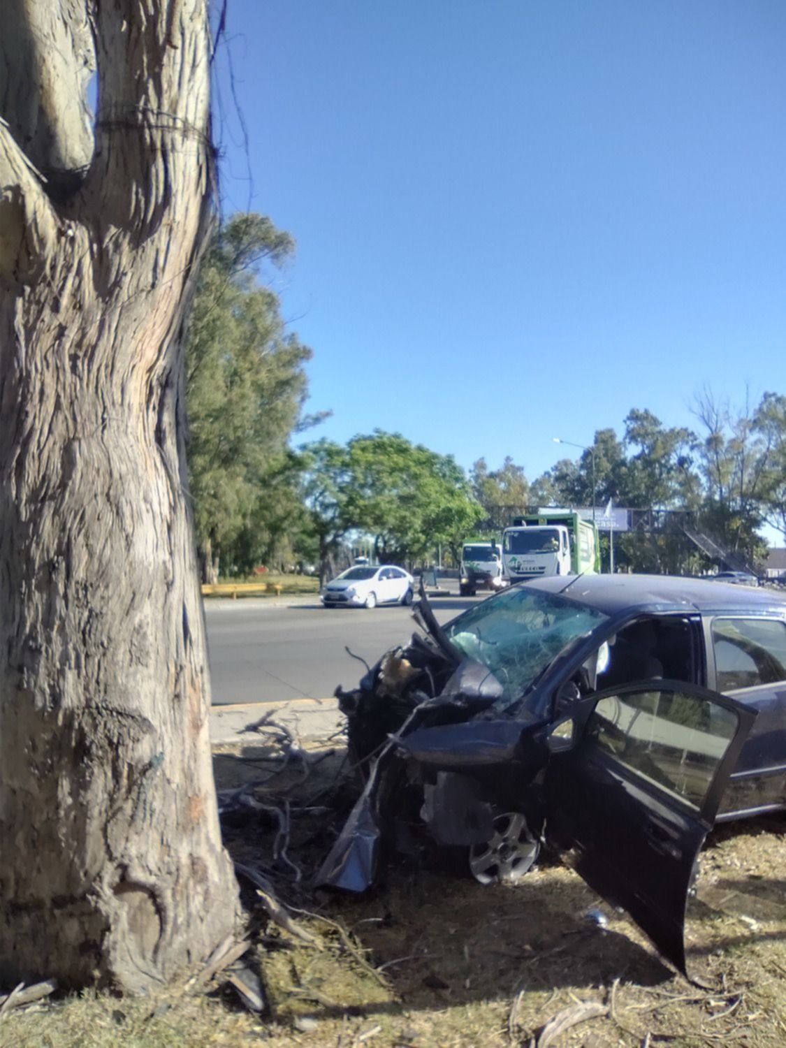 El impactante choque tuvo lugar alrededor de las 4.30 de este viernes y estuvo a punto de convertirse en tragedia. El conductor perdió el control de su auto cuando ingresaba a la ciudad y se incrustó contra un árbol de la rotonda de 120 y 32 a toda velocidad, pero sobrevivió pese a la violencia del impacto.