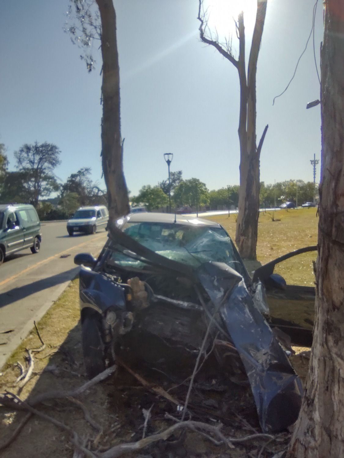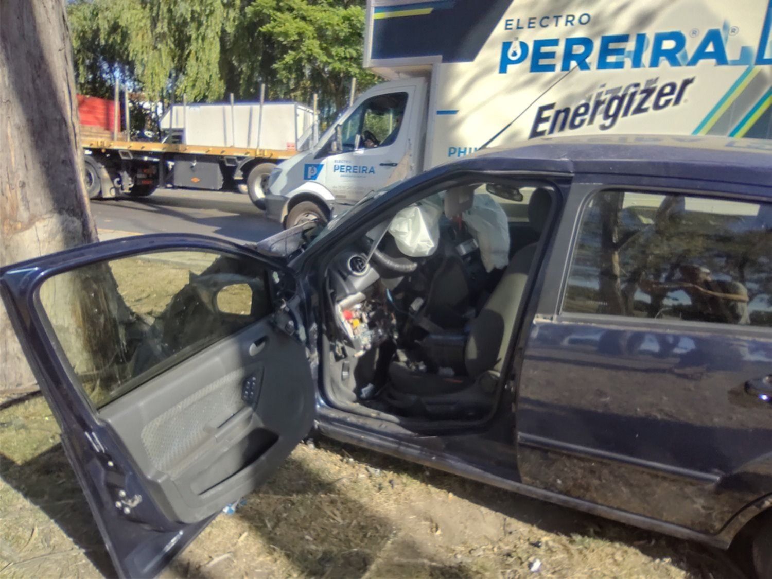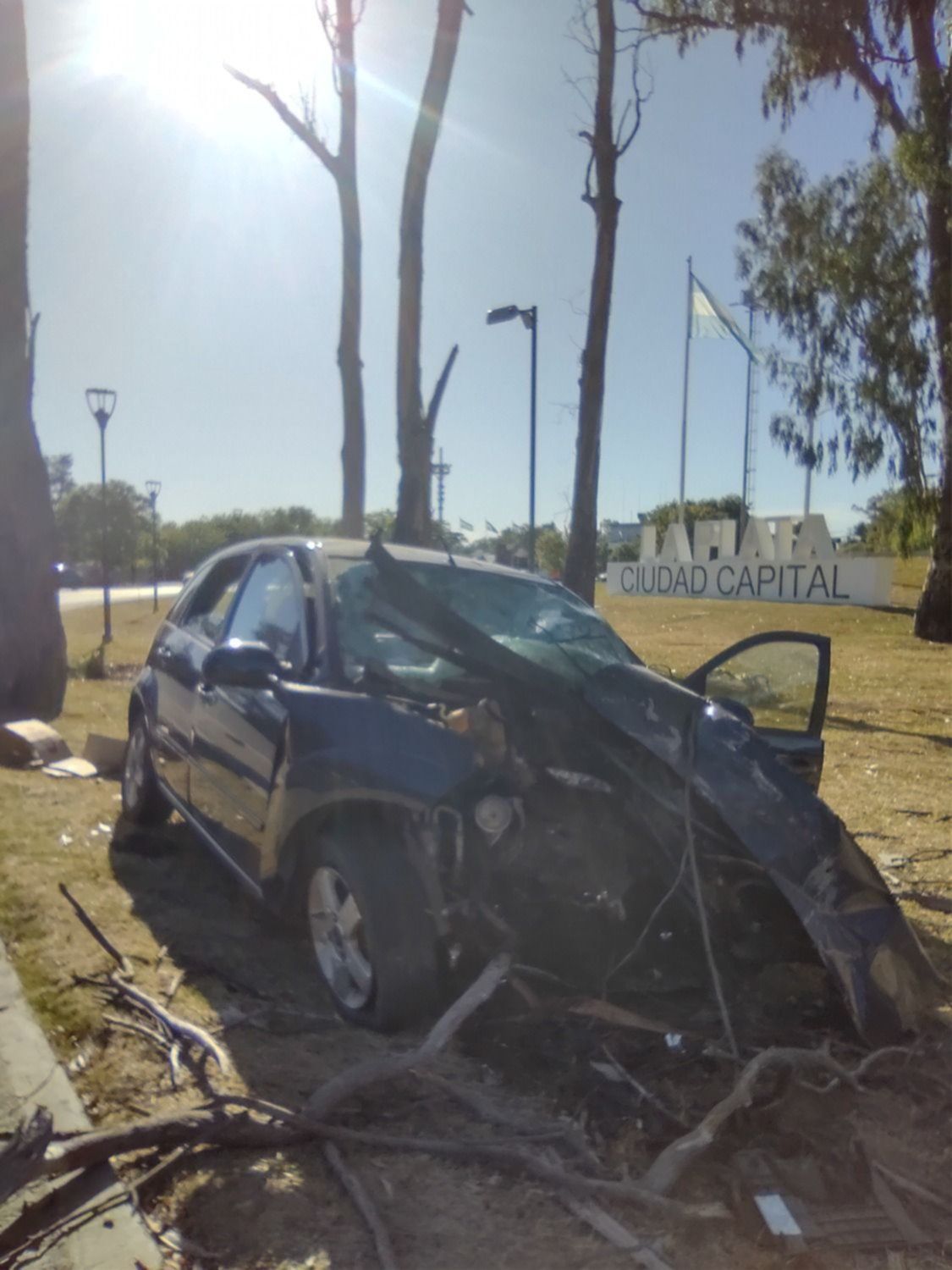 El impactante choque tuvo lugar alrededor de las 4.30 de este viernes y estuvo a punto de convertirse en tragedia. El conductor perdió el control de su auto cuando ingresaba a la ciudad y se incrustó contra un árbol de la rotonda de 120 y 32 a toda velocidad, pero sobrevivió pese a la violencia del impacto.