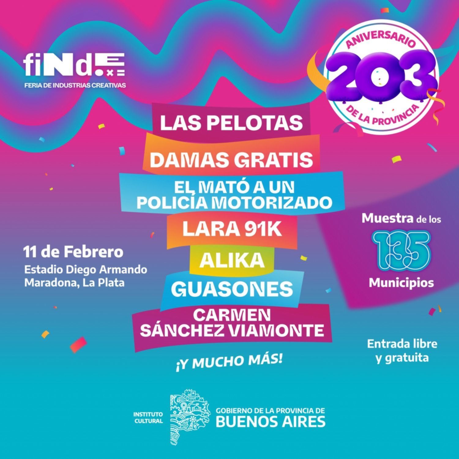 El Instituto Cultural de la provincia de Buenos anunció que ya está casi todo listo para una nueva Feria de Industrias Creativas (FINDE), que tendrá lugar en el Estadio Único Diego Armando Maradona el próximo sábado 11 de febrero y se llevará a cabo para conmemorar el 203 aniversario de la fundación de la Provincia.
