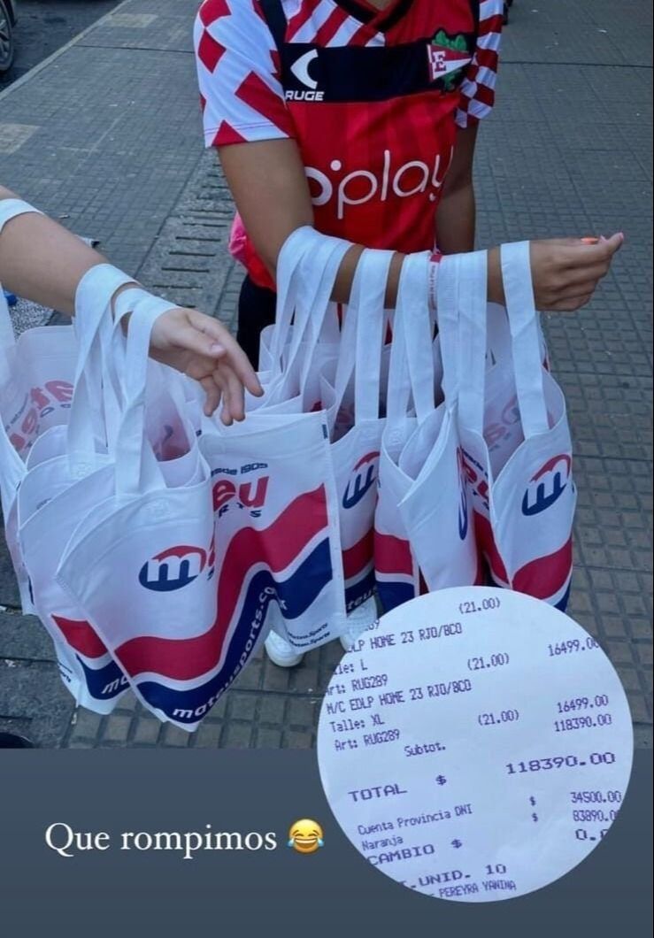 Este viernes comenzó la venta de las nuevas camisetas Ruge de Estudiantes para la temporada 2023 y los hinchas coparon las tiendas de Mateu Sports para conseguir las nuevas casacas, pero una hincha del León sorprendió a todos tras revelar en sus redes sociales que gastó casi $120.000 en una sola compra.