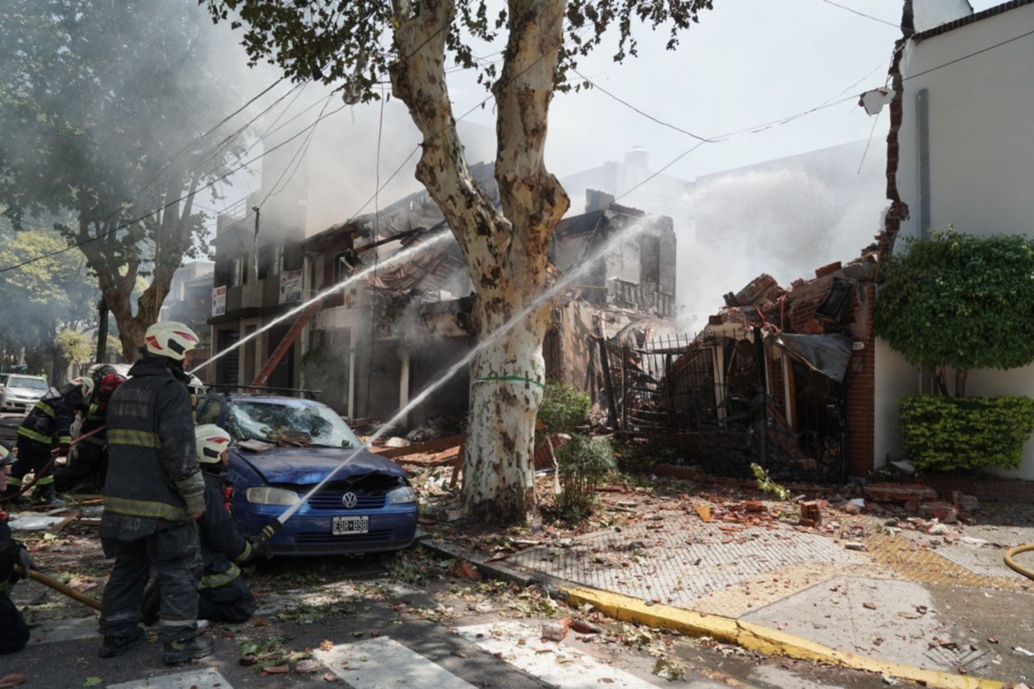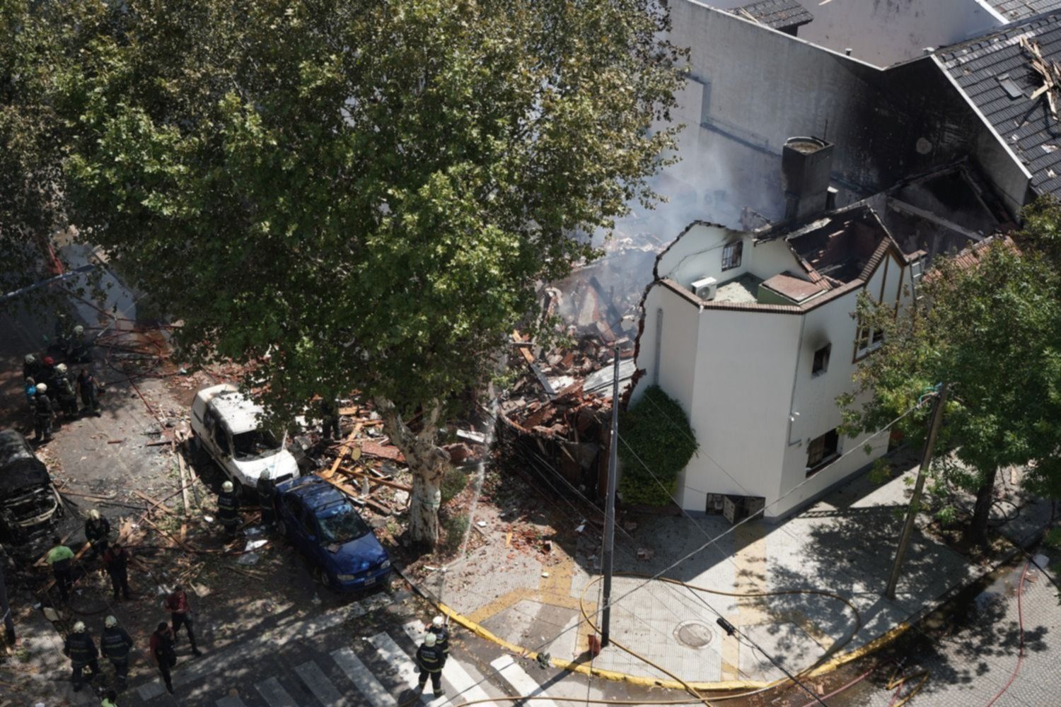 Por causas que se desconocen, se produjo una fuerte explosión que provocó el derrumbe de la vivienda ubicada en ese lugar y el incendio de dos vehículos que se encontraban estacionados en la zona.