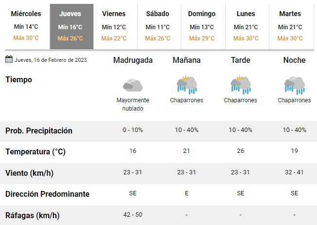 De acuerdo con las previsiones de los especialistas, la tercera jornada de la semana transcurrirá sin contratiempos, con un cielo ligera a parcialmente nublado y algo ventoso, incluso con algunas ráfagas rotando del noreste al sudeste.