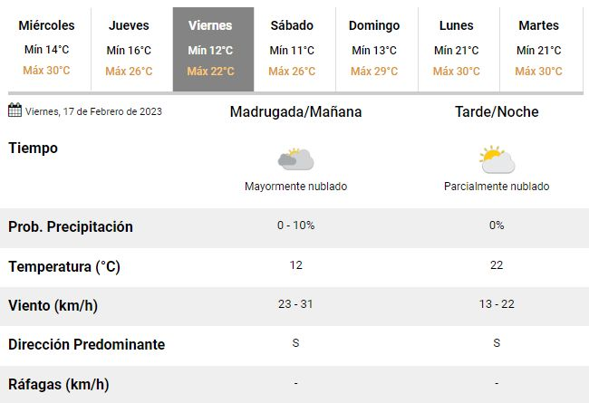 La semana cerrará en tanto con un viernes de entre 12 y 22°C, ya sin probabilidades de lluvias; y el fin de semana transcurrirá con sol y temperaturas en aumento, pero también fresco, con mínimas de 11 y 13°C y máximas de 26 y 29°C durante el sábado y el domingo, respectivamente.