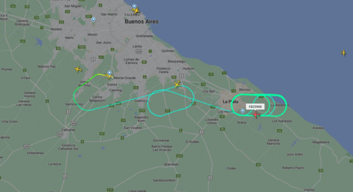 Según puede verse en el sitio especializado Flightradar, el vuelo FBZ5900 de Flybondi Ezeiza-Rio de Janeiro dio varios giros sobre el cielo de La Plata alrededor de dos horas para luego regresar al Aeropuerto Internacional Ministro Pistarini. “Es un vuelo que salió de Ezeiza con destino a Rio de Janeiro, indudablemente debe haber tenido algún problema menor porque sino ya hubiese aterrizado. En esos casos, el controlador de Ezeiza le asigna un lugar donde puede esperar y gastar combustible”, le dijo a 0221.com.ar Daniel, un piloto de aviones que estaba siguiendo el minuto a minuto del recorrido del Boeing 737 LV-KEG.