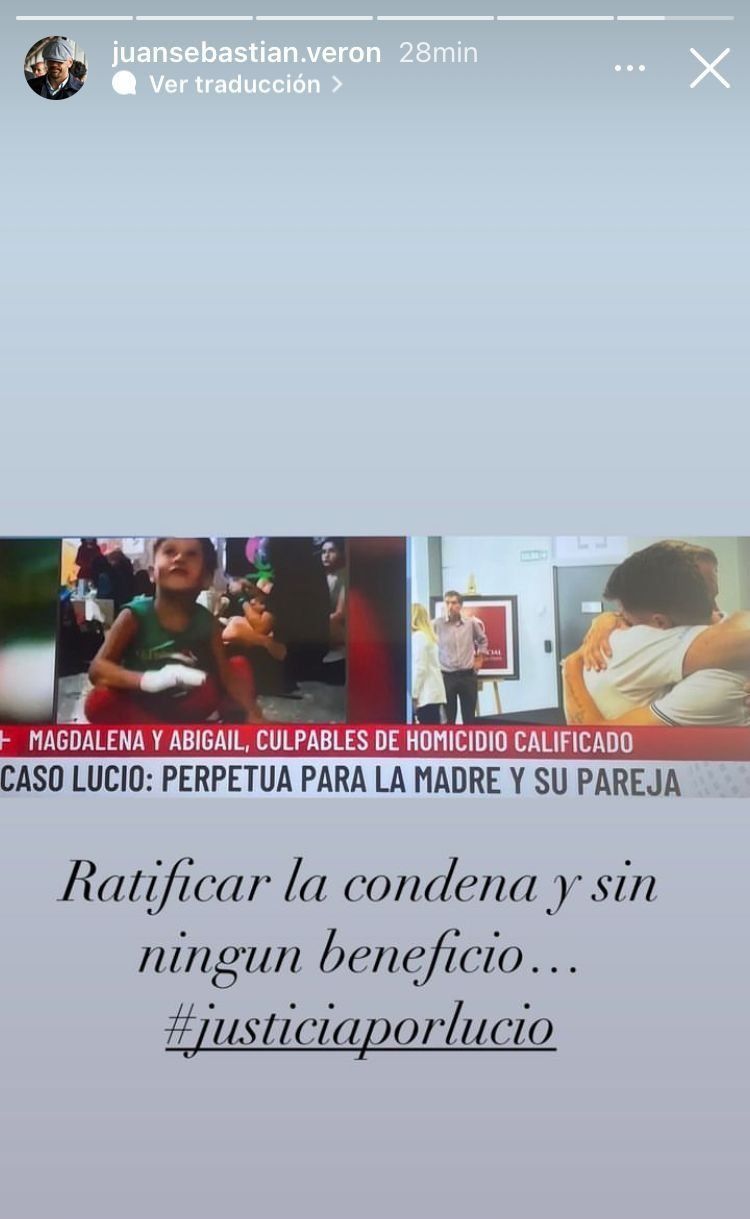 Ante esto, Juan Sebastián Verón hizo una publicación en sus redes sociales, dejando bien clara su postura. “Ratificar la condena y sin ningún beneficio… #justiciaporlucio”, fue las palabras del vicepresidente de Estudiantes en su storie de Instagram, la cual estaba acompañada de una foto de la TV y repercusiones del caso.