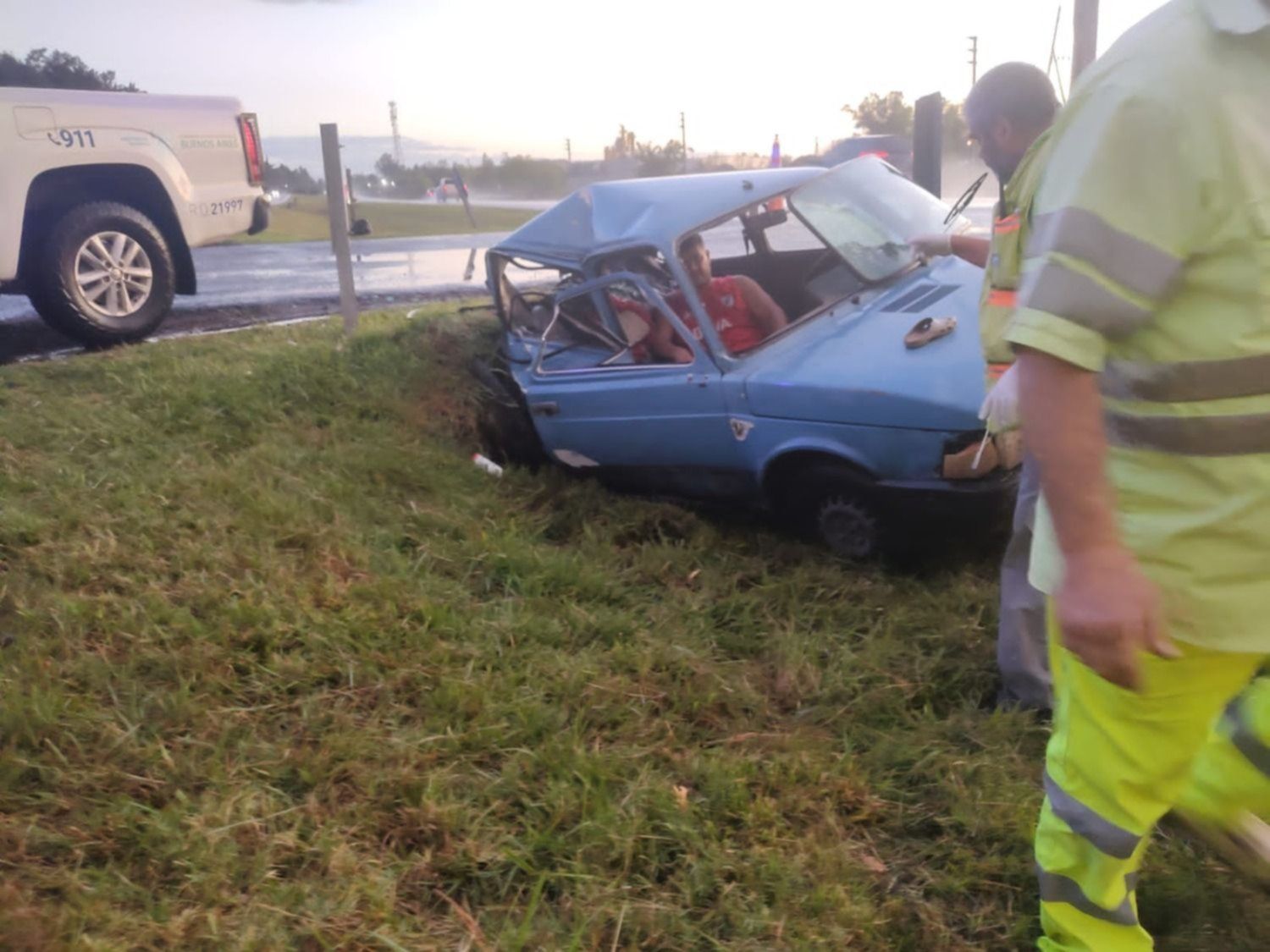 Un impactante accidente de tránsito ocurrió en las últimas horas en Ruta 2 y de milagro no se transformó en una nueva tragedia vial en la región. El hombre de 36 años circulaba con su hijo de 5 cuando se produjo el siniestro y el auto en el que circulaban quedó destrozado en una zanja.